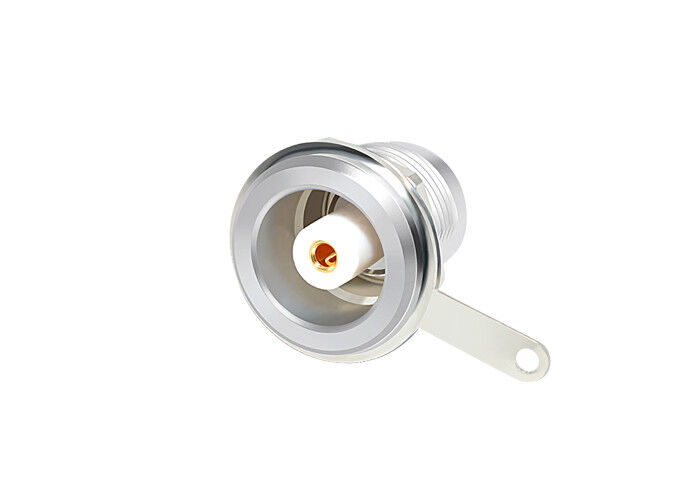 vaste stopcontact, notenbevestiging, 00S-serie, meerpooltype met 50 ohm coaxiale contacten, buitenste behuizing in gechromeerd messing, PPS-isolateur |
