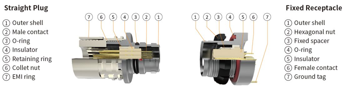 | Markeren: | AMC 9-pins push-pull connector,Militair grade AMC connector,High-density AMC connector 5000 cycli |